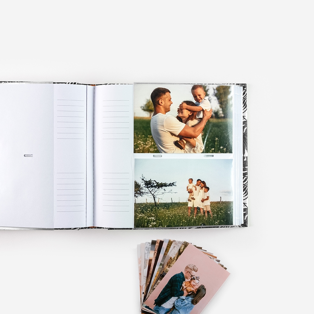O Álbum Analógico Tropical é um Álbum Quadrado com dimensões de 20x20cm, oferecendo o formato perfeito para organizar as tuas memórias de uma maneira elegante e compacta.