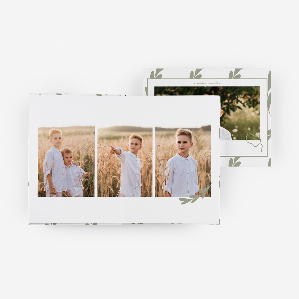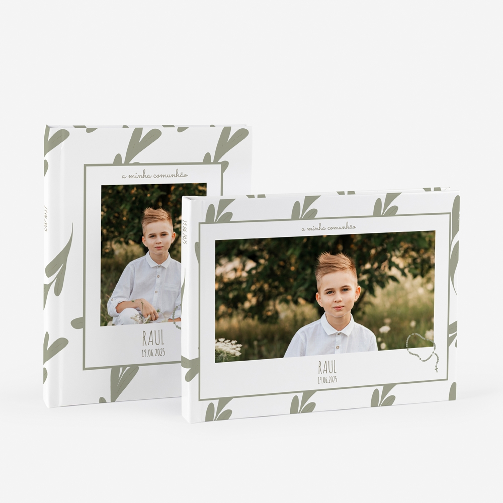 Inspirado na natureza, com folhas suaves e tons neutros, este álbum respira calma. A capa com fotografia dá-lhe um toque direto, sem perder delicadeza. Este álbum é perfeito para guardar momentos espontâneos, detalhes pequenos, expressões verdadeiras e tudo o resto que te irá ajudar a contar o que foi vivido neste dia.