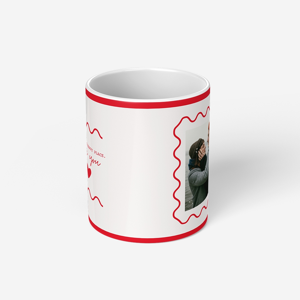 A caneca mede 8 x 9,5 cm, com 100% da superfície personalizável, exceto a asa. A área de impressão permite criar um produto exclusivo com fotos, ilustrações ou textos.