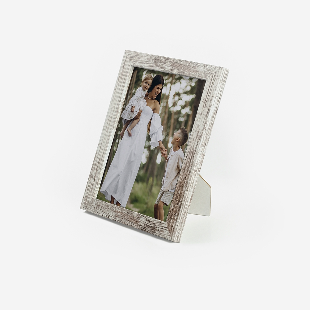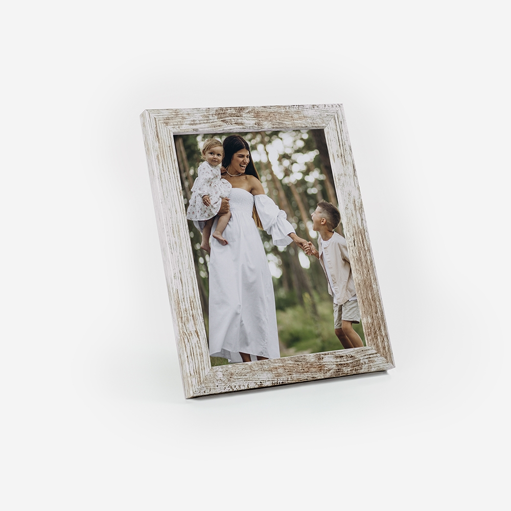 Moldura de alta qualidade, composta por uma estrutura em madeira com aspecto rústico, garantindo durabilidade e um acabamento perfeito para destacar as tuas fotos.