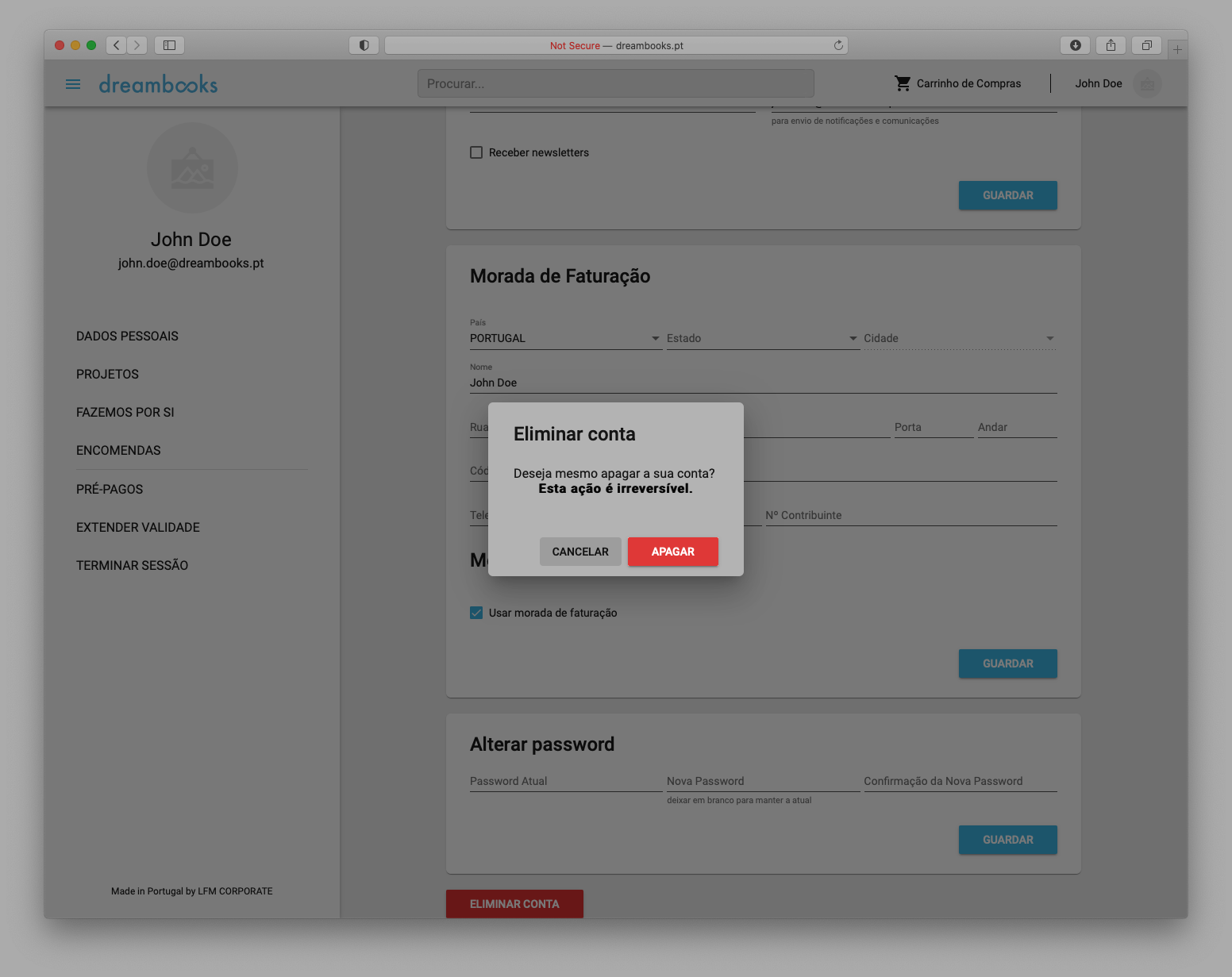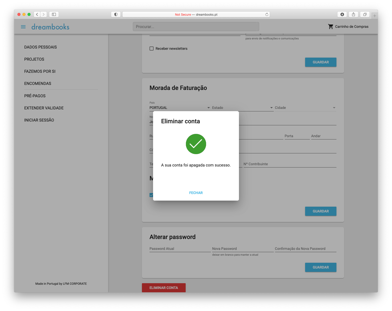 2.8. Quando o serviço de conta utilizador é extinto, a Dreambooks suprime a conta, assim como, todas as fotografias e projetos que nela estejam arquivados.