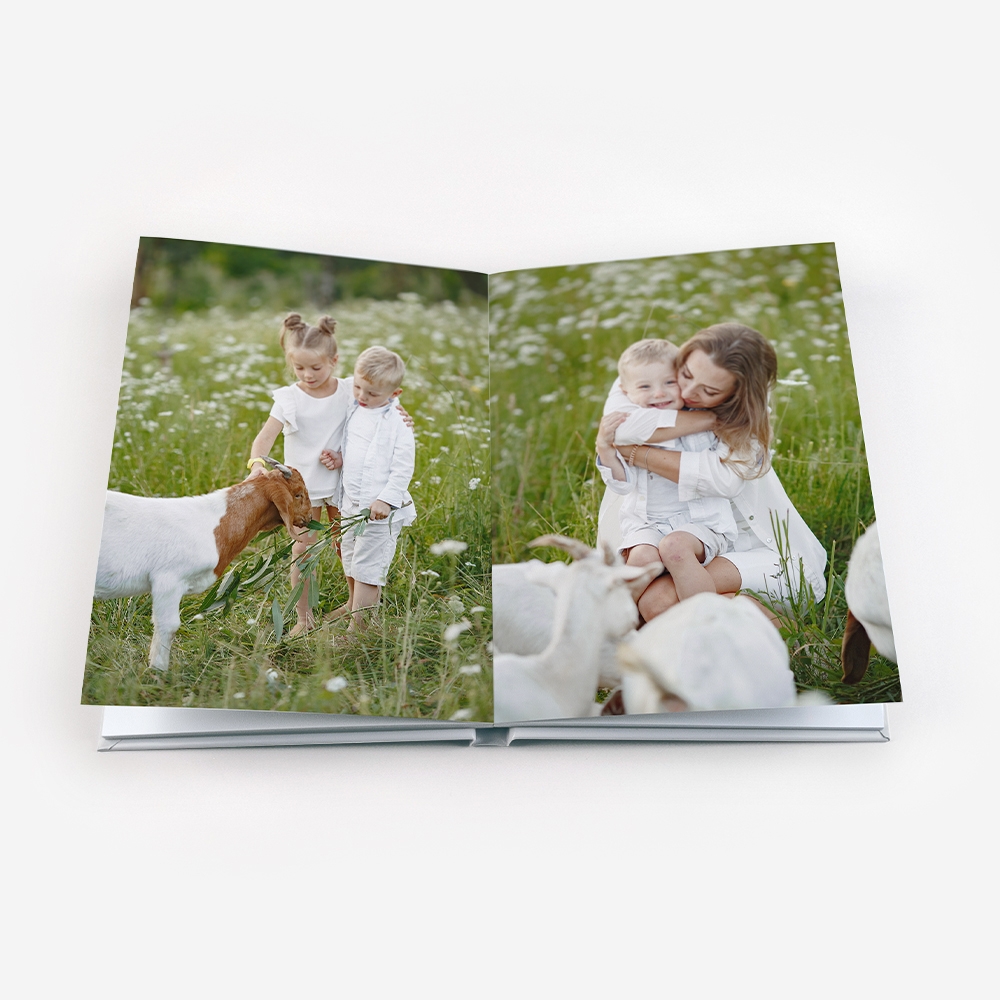 Os Álbuns de Fotos Dreambooks apresentam uma abertura panorâmica, com a possibilidade de colocar uma foto em destaque ocupando duas páginas. Desta forma, desfrutarás de uma visualização perfeita das tuas fotos, sem cortes ou partes escondidas.